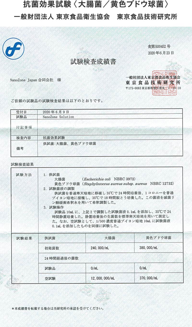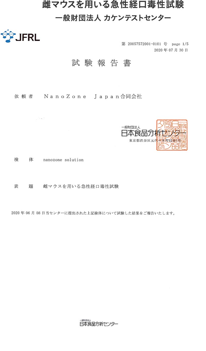 ナノゾーンコートモビリティは、水・酸化チタン・イソプロピルアルコールを主成分とし、国内外の検査機関で安全性が確認されています。